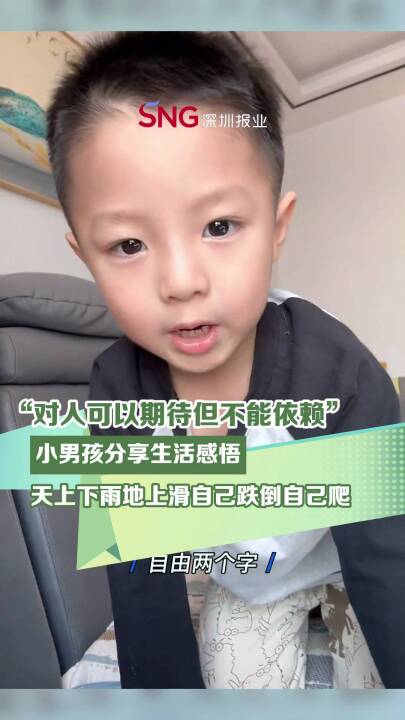 “对人可以期待但不能依赖”小男孩分享生活感悟天上下雨地上滑自己跌倒自己爬来源:qiqi小杨