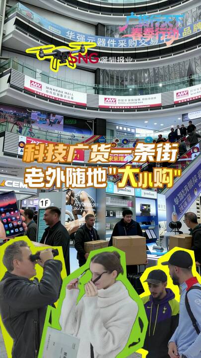 【科技广货一条街,老外随地“大小购”】在深圳,有着全球电子人的圣地——华强北。广东“智造”的前沿科技产品扎堆亮相、上新不断,华强北用硬核广货实力圈粉。依托广东完整产业链,性价比与创新力双在线,让AI眼镜、无人机等潮品远销海外。这里不仅是电子圣地,更是“广货行天下”的鲜活缩影。#广货行天下# #科技广货一条街#