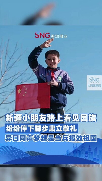 新疆小朋友路上看见国旗纷纷停下脚步肃立敬礼异口同声梦想是当兵报效祖国来源:人民日报#大湾区观察#深圳观察