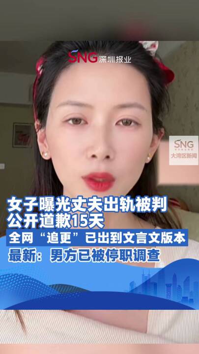 女子曝光丈夫出轨被判公开道歉15天,全网“追更”已出到文言文版本,最新:男方已被停职调查。来源:潮新闻 #大湾区观察# #深圳观察#