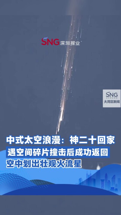 中式太空浪漫:神二十回家遇空间碎片撞击后成功返回空中划出壮观火流星来源:人民日报#大湾区观察#深圳观察
