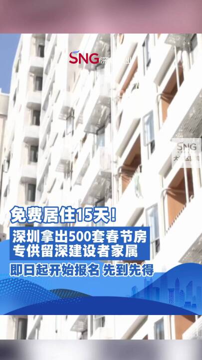 免费居住15天!深圳拿出500套春节房专供留深建设者家属即日起开始报名 先到先得来源:站在深圳#大湾区观察#深圳观察