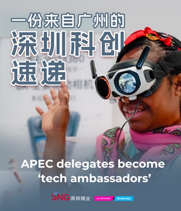 APEC嘉宾体验深圳科创|2月4日,参加首次APEC高官会的嘉宾们化身为“科技体验官” 探访了广州全新落成的海心沙全空间智能中心。在极具未来感的展厅内由22家深圳企业与机构组成的深圳展团向与会嘉宾集中展示涵盖机器人、具身智能、高端制造、人工智能等等多个前沿科技领域的科技成果。During the first APEC Senior Officials’ Meeting on Feb. 4, s