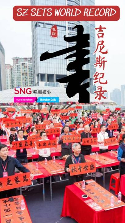新吉尼斯记录在“湾区之眼”诞生 | 2月7日,“最多人同时写春联”吉尼斯世界纪录挑战在深圳文化地标“湾区之眼”举行。活动吸引了505人报名,最终492人成功共创“最多人同时写春联”世界纪录。The rooftop garden of the cultural landmark Eyes of the GBA held the Guinness World Record attempt for