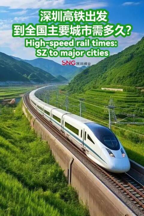 高铁26日调图 | 1月26日零时起,全国铁路将实行新的列车运行图,来看看调图后从深圳到全国其他主要城市所需时间吧!Starting at midnight Jan. 26, a new train timetable will take effect nationwide. Here's a look at the travel times from Shenzhen to other ma