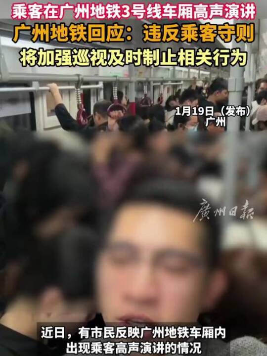 乘客在广州地铁3号线车厢高声演讲 广州地铁回应(广州日报)