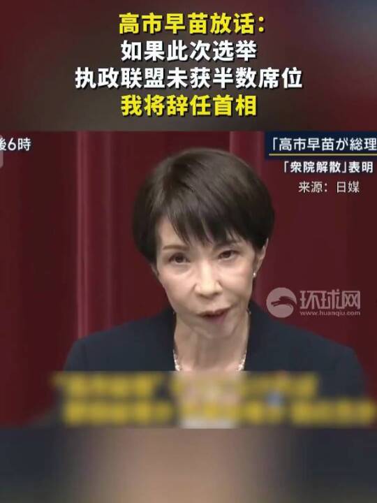 高市早苗放话:如果此次选举执政联盟未获半数席位,我将辞任首相(环球网)