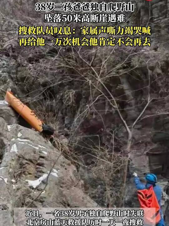 38岁男子爬野山坠崖遇难 还是2个孩子的父亲 搜救队员叹息:家属声嘶力竭哭喊 来源:新闻晨报