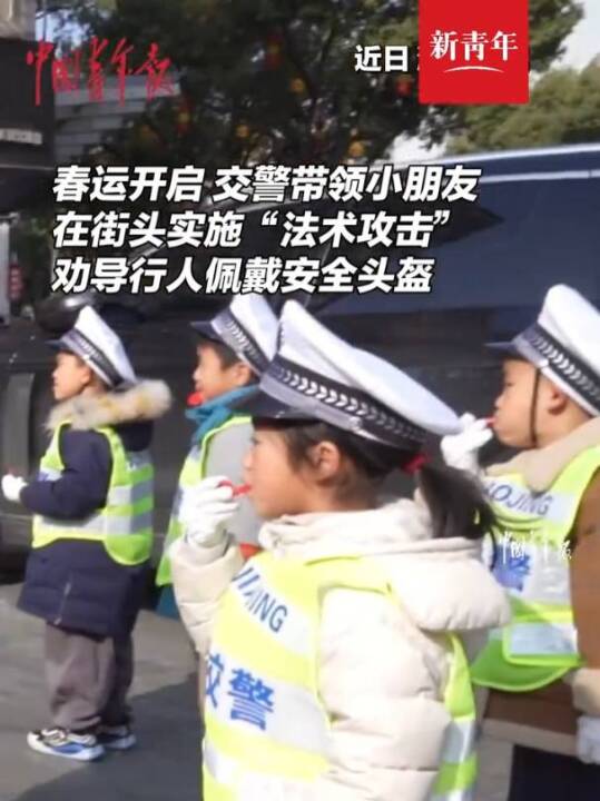 萌娃上岗!专治不戴头盔 (来源:中国青年报)