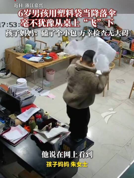 近日,浙江嘉兴一6岁男孩模仿短视频用塑料袋当“降落伞”,从桌上纵身一跃头朝地直摔地面,痛得哇哇大哭。家长:照了CT万幸没事。(广东新闻频道)