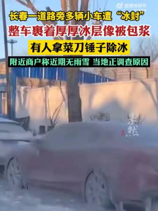 【#长春一道路旁多辆汽车遭冰封 , 附近商户称近期无雨雪,当地正调查原因】(来源:齐鲁晚报)