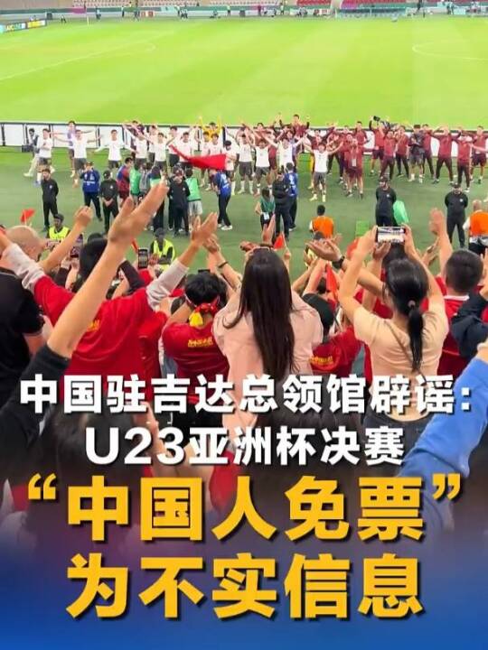 中国驻吉达总领馆辟谣:U23亚洲杯决赛“中国人免票”为不实信息 票价最低28元(中国新闻网)