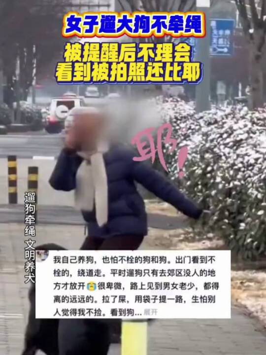 女子遛大狗不牵绳,别人劝她两句她跟人家比耶!(广州新闻电台)