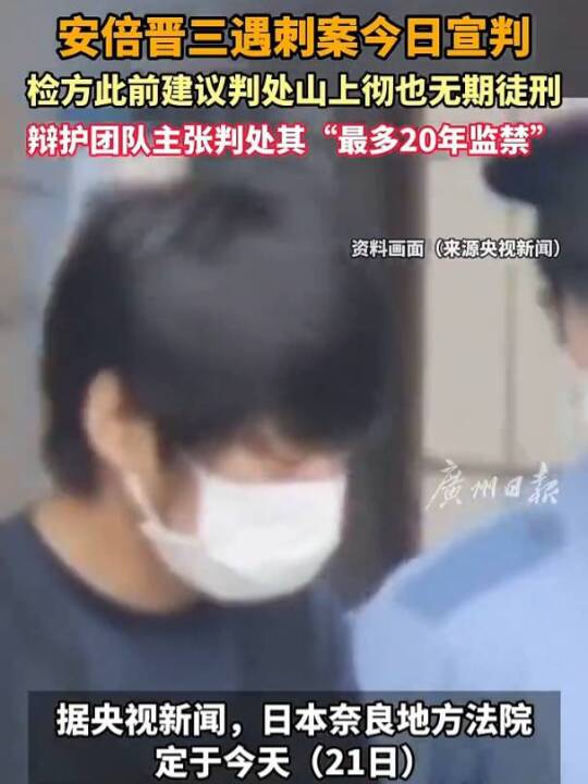 安倍晋三遇刺案今日宣判,检方此前建议判处山上彻也无期徒刑,辩护团队主张判处其“最多20年监禁”(央视新闻、广州日报)