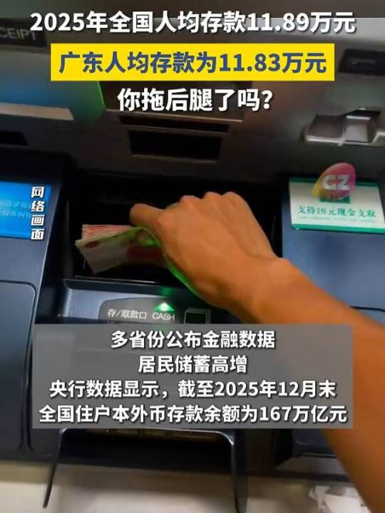 2025年全国人均存款11.89万元,广东人均存款为11.83万元!你拖后腿了吗?(广州广播电视台)2025年全国人均存款11.89万元,广东人均存款为11.83万元!你拖后腿了吗?(广州广播电视台)
