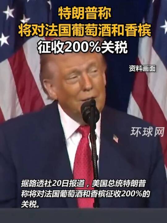 特朗普称将对法国葡萄酒和香槟征收200%关税(环球网)