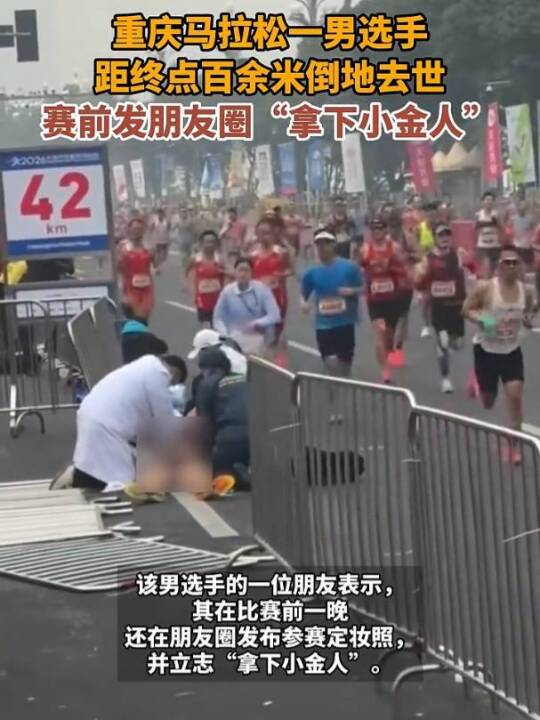 重庆马拉松一男选手距终点百余米倒地去世,赛前发朋友圈“拿下小金人”(时速新闻、新京报)