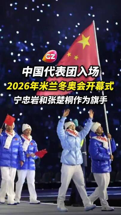 五星红旗闪耀米兰冬奥!中国体育代表团入场,宁忠岩和张楚桐作为旗手!#冬奥会 #米兰冬奥会开幕式 #中国 #体育 (来源:广州广播电视台)