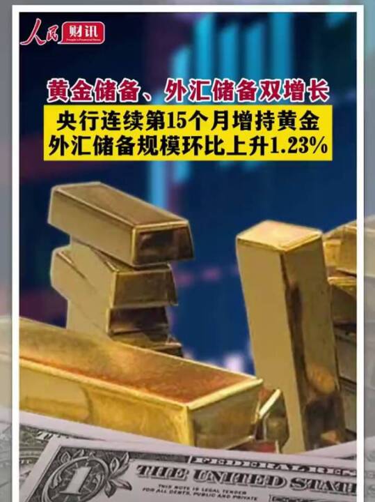 黄金储备、外汇储备双增长 央行连续第15个月增持黄金 外汇储备规模环比上升1.23% #黄金 #外汇 (来源:人民财讯)