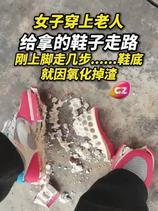 女子穿上老人拿给的鞋子走路,刚上脚走,鞋底就因氧化掉渣 #搞笑瞬间 #家人的礼物 (来源:广州广播电视台)