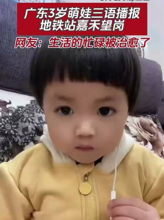 广东3岁萌娃三语播报地铁站嘉禾望岗,网友:生活的忙碌被治愈了#广东萌娃 #粤语 #嘉禾望岗 #广州地铁 (来源:珠江频道)