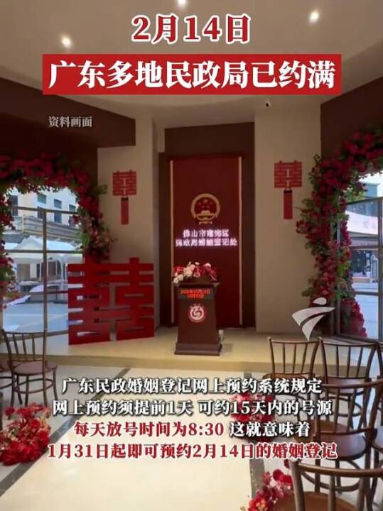 2月14日广东多地民政局已约满(来源:粤TV)