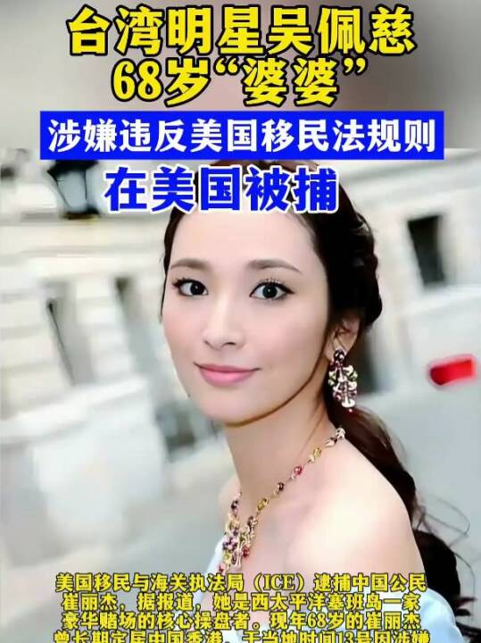 涉嫌违反美国移民法规则,吴佩慈68岁“婆婆”在美被捕。(红星新闻、合新闻)