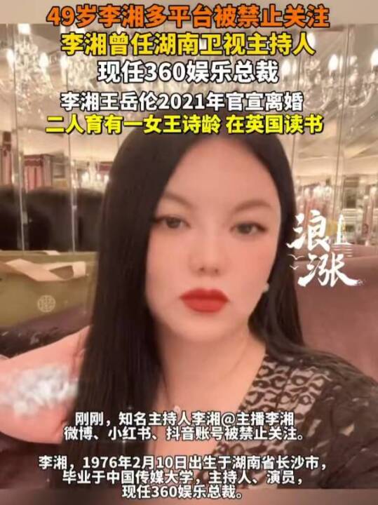 #李湘多平台社交账号被禁止关注 (红星新闻、青岛新闻网)