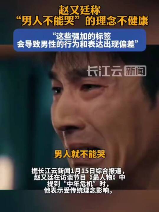 赵又廷称“男人不能哭”的理念不健康(长江云新闻、海报新闻)