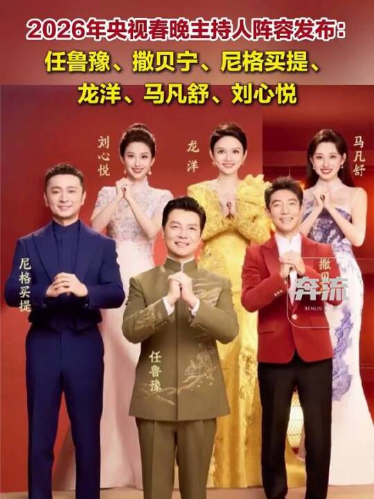 2月4日,中央广播电视总台《2026年春节联欢晚会》发布主持人阵容。(央视新闻、奔流新闻)