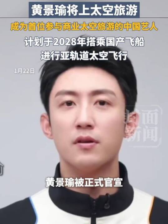 黄景瑜将上太空旅游,成为首位参与商业太空旅游的中国艺人。(封面新闻)
