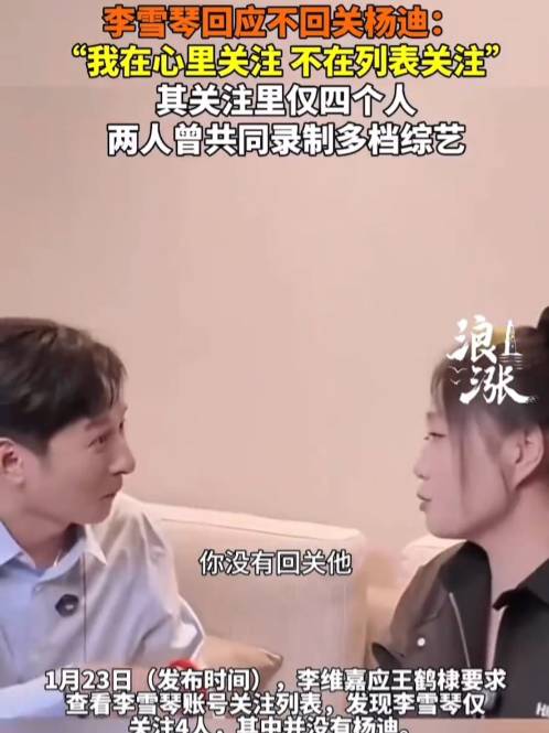 李维嘉:“杨迪关注了你,你没有回关他,为啥呢?”李雪琴:“我在心里关注,不在列表关注”。(浪涨新闻、中国蓝新闻)