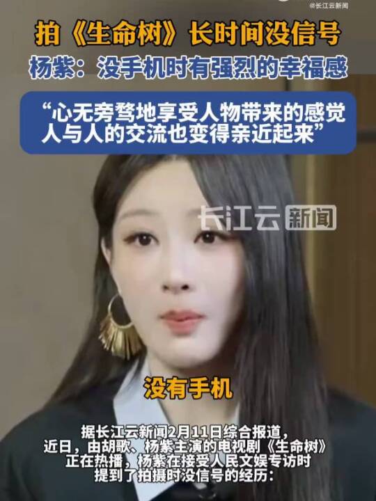 【#杨紫回应拍生命树长时间没信号 ,杨紫说没手机时有强烈的幸福感】(来源:长江云新闻)
