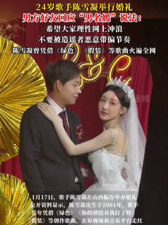 24岁歌手陈雪凝举行婚礼,#陈雪凝丈夫的好友回应男名媛说法 (潇湘晨报)