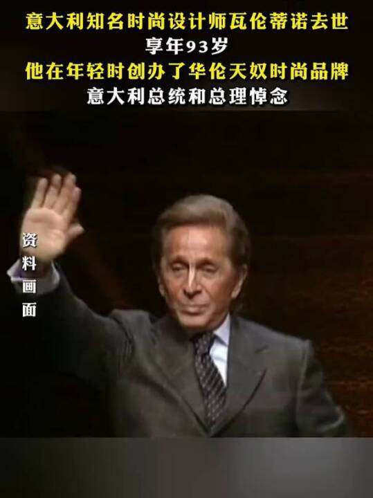 意大利知名时尚设计师瓦伦蒂诺去世,享年93岁,他在年轻时创办了华伦天奴时尚品牌。(澎湃新闻、新华社)