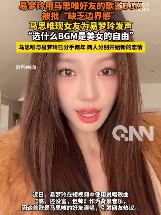 易梦玲用马思唯好友的歌当BGM,被批“缺乏边界感”,马思唯现女友为易梦玲发声。(中国蓝新闻)