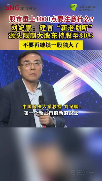 股市重上4000点要注意什么?刘纪鹏:建言“新老划断”源头限制大股东持股至30%不要再继续一股独大了12月2日,“未来20·2025A股上市公司成长力年会”在上海嘉定举行,中国政法大学教授、博导、商学院前院长刘纪鹏以“站稳4000点,要解决哪些问题”为主题发表演讲。刘纪鹏表示:“A股重上4000点,需要开源节流,推动储蓄资金进入资本市场,同时避免上市公司大股东一股独大,上市公司分红金