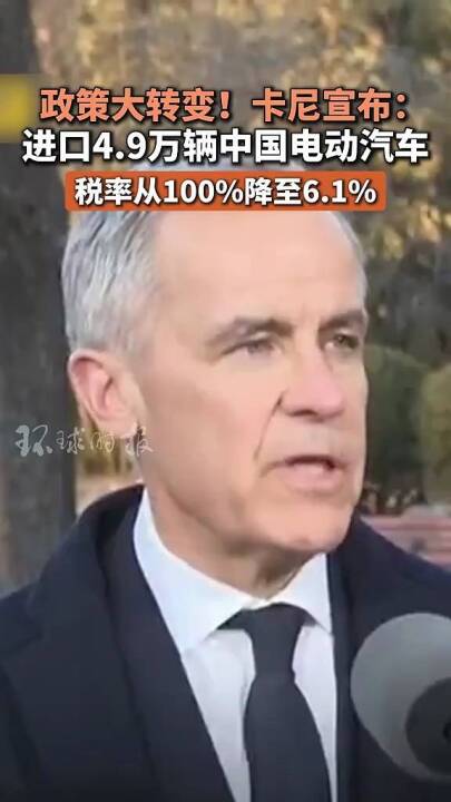 政策大转变!卡尼宣布:进口4.9万辆中国电动汽车,税率从100%降至6.1%(环球时报)