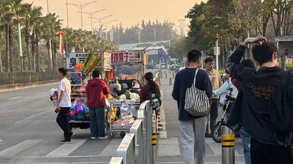 深圳一网红公园门口拥堵不堪,记者实探:有车道被摊位完全占据