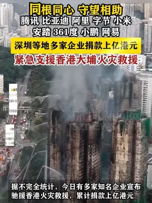 11月26日下午,香港大埔宏福苑突发火灾。次日,腾讯公益慈善基金会(香港)即启动首批1000万港元捐款,用于受灾居民的紧急救援。